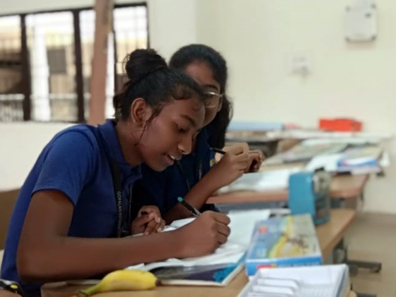 Students of Grade IX and X involved in drawing and painting of still life and nature.