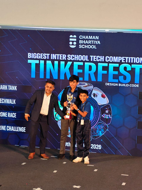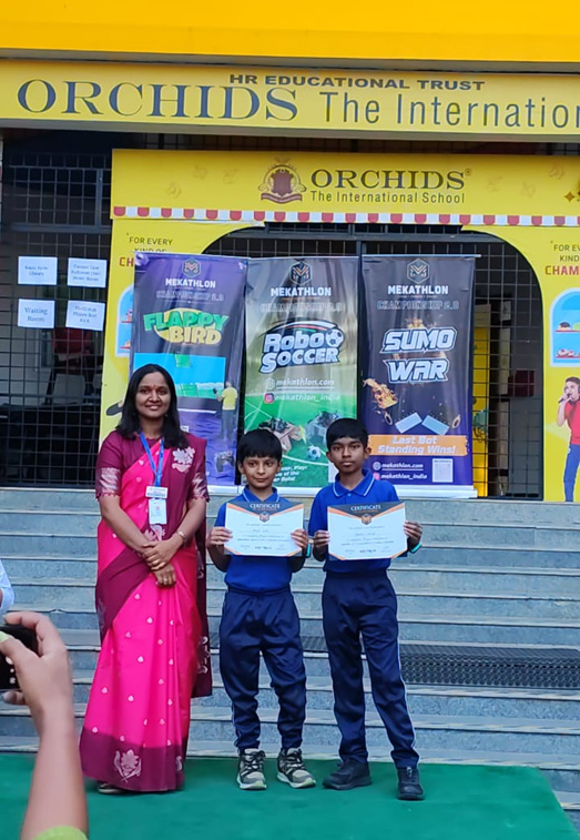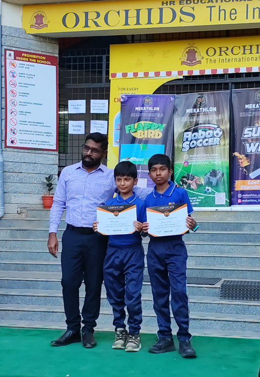 3. Our Robotics Team consisting of Dhruvin Manoj and Ateeksh Sahu won 1st in Racer Robo and Robo Soccer and second price in Sumo in the Mekathlon Regionals held at Orchids International School, Kengeri, 17th and 18th January, 2026 and qualified for National.