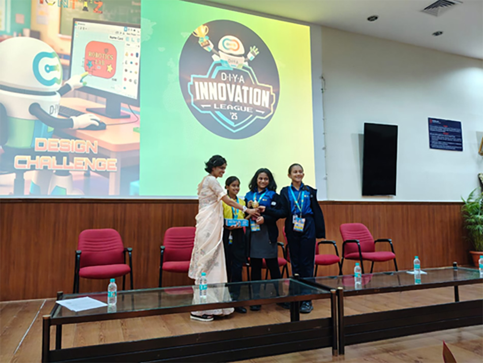 First in Design Challenge , Amaira Luthra, Kimaya Sharma and Aashika Diya Kumar