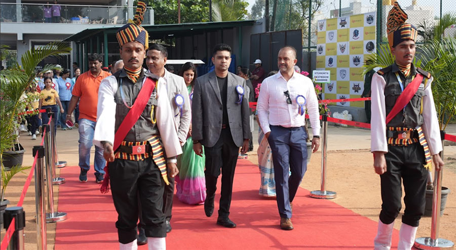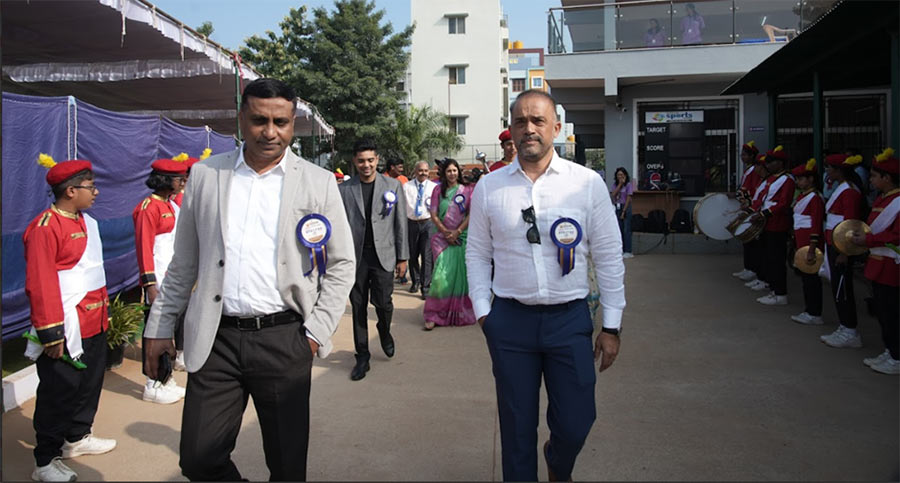 Innovation was a key pillar of this year’s event. A student-built drone, created indigenously in collaboration with Gopalan Engineering College, soared high above the ground to inaugurate the Sports Meet. With petals being showered from the drone across the field, the drone carried a scroll which was released by the Chief Guest, Mr. Adil Kalyanpur, Indian tennis player, to declare the sports meet open. This remarkable fusion of creativity and technology reflected the school’s emphasis on hands-on learning and forward-thinking education.