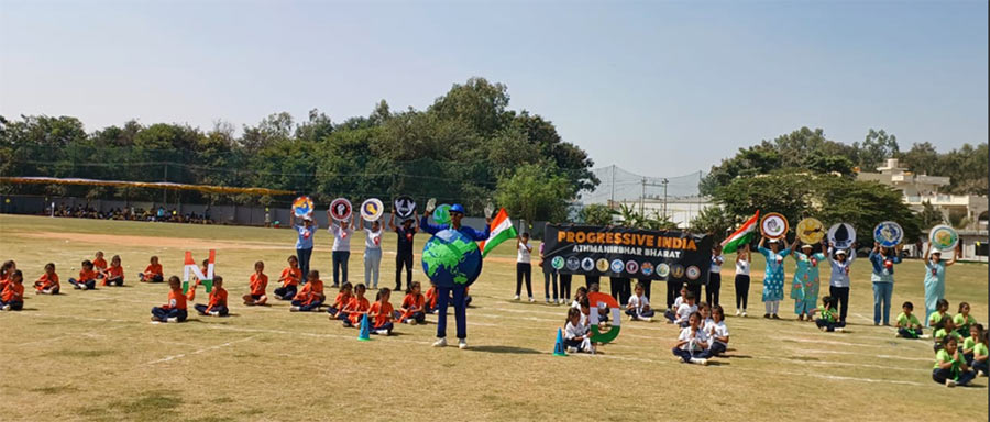 The 2-day event witnessed a series of meticulously choreographed drills, each representing a specific United Nations Sustainable Development Goal (SDG). Through rhythmic movements, vibrant props, and coordinated formations, students brought to life different revolutions like white revolution, green revolution, yellow revolution, digital revolution etc. The field transformed into a dynamic stage where sports became a medium to communicate environmental consciousness and social equity.