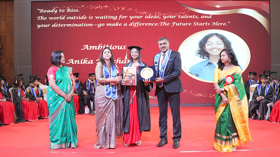 In their inspiring addresses, the Chief Guest, Major General Vinod Tom Matthew, and the Guest of Honour, Mr. Darshith S, emphasised the timeless values of discipline, perseverance, and hard work as the cornerstones of success. They encouraged students to dream big, remain focused on their goals, and pursue excellence with integrity. Echoing similar sentiments, the Director, Madam Sunitha Prabhakar, and the Principal, Mrs. Rajashree, urged the graduating students to uphold the school’s values, extend compassion and support to others, and grow into responsible, ethical, and socially conscious citizens. They reminded the students that true success lies not only in personal achievement but also in serving society and making a positive impact wherever they go.