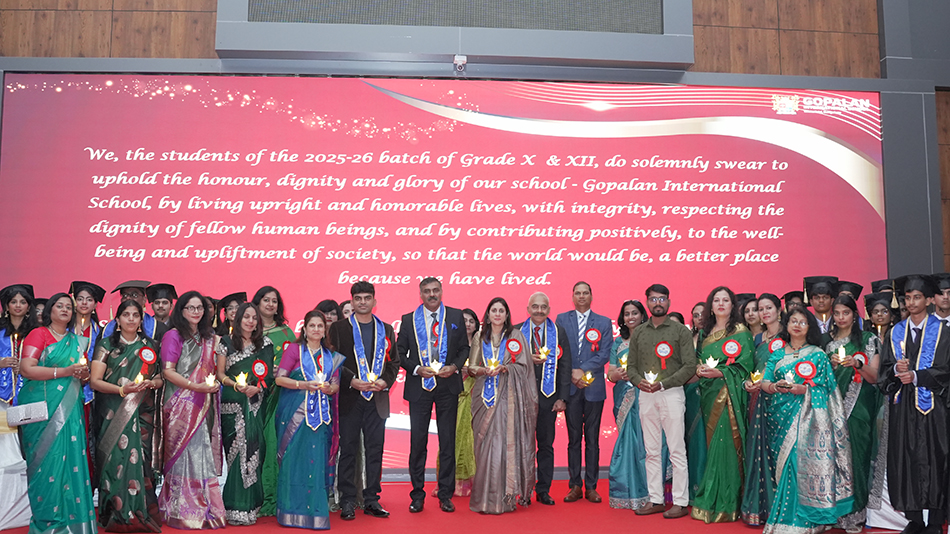 The Valedictory Ceremony of Gopalan International School was held with great dignity and grace on 10 January 2026 at the School Amphitheatre. The ceremony, themed “Illuminate. Impact. Inspire.”, marked an important milestone in the lives of the graduating students of Grades X and XII from the ICSE, ISC, CIE, and NIOS streams, signifying the successful completion of a significant phase of schooling and the beginning of a new academic journey.