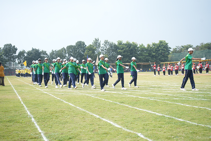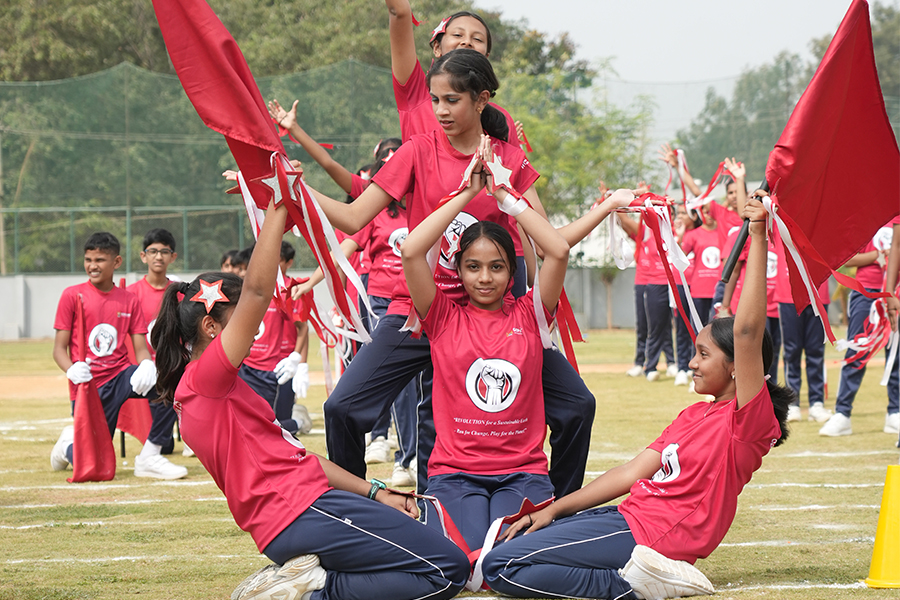 The 2-day event witnessed a series of meticulously choreographed drills, each representing a specific United Nations Sustainable Development Goal (SDG). Through rhythmic movements, vibrant props, and coordinated formations, students brought to life different revolutions like white revolution, green revolution, yellow revolution, digital revolution etc. The field transformed into a dynamic stage where sports became a medium to communicate environmental consciousness and social equity.