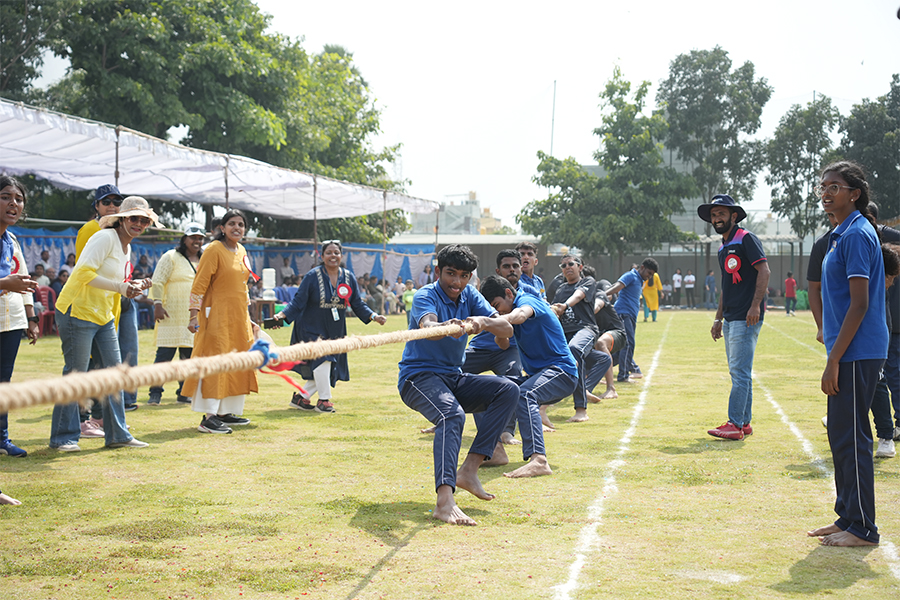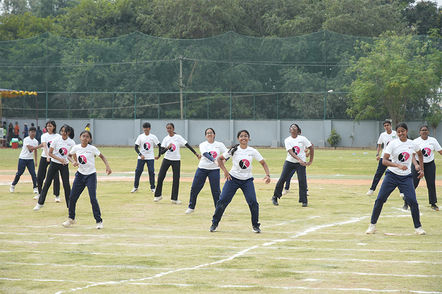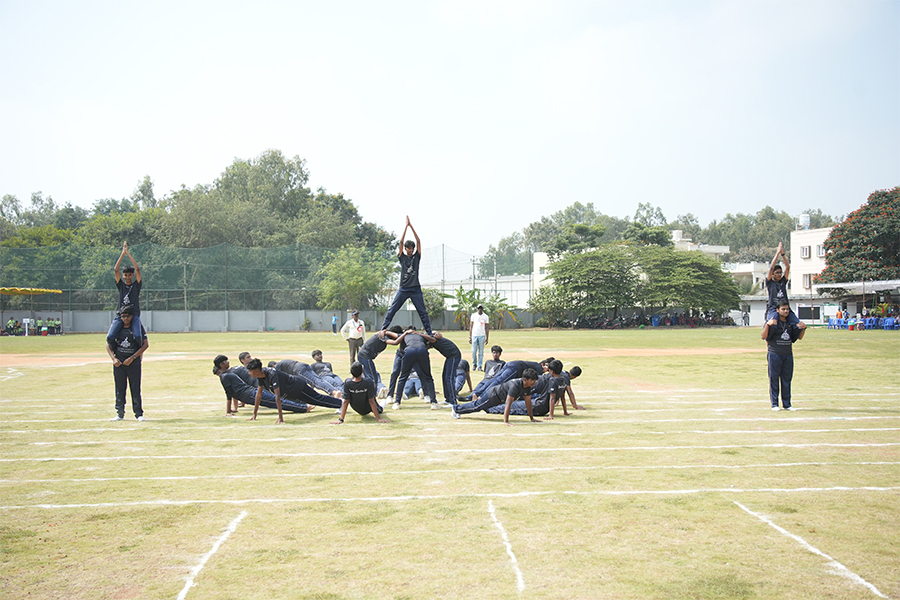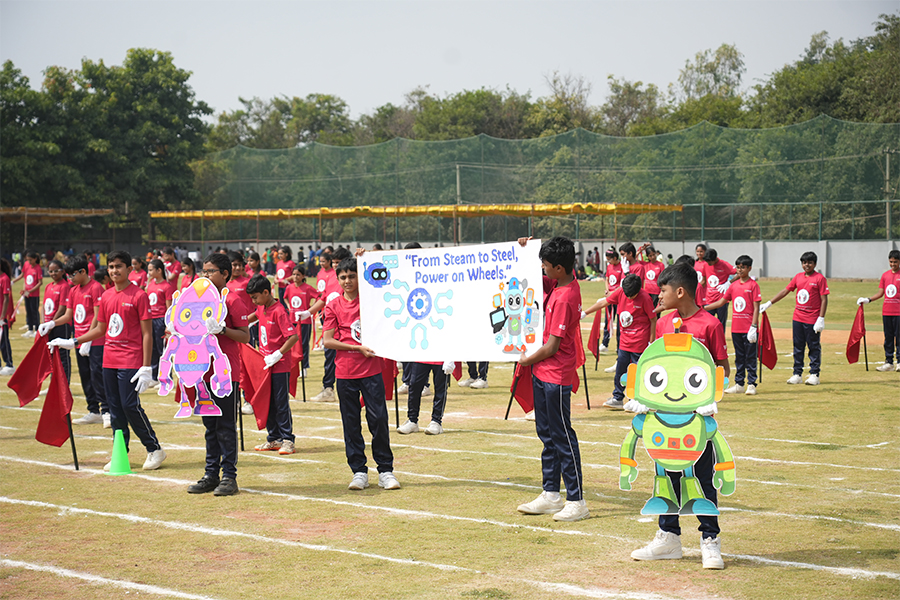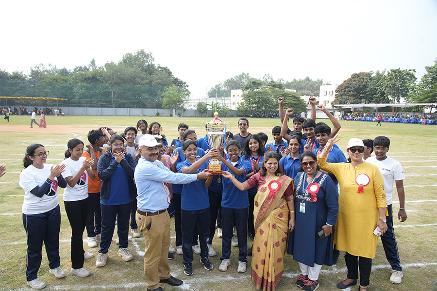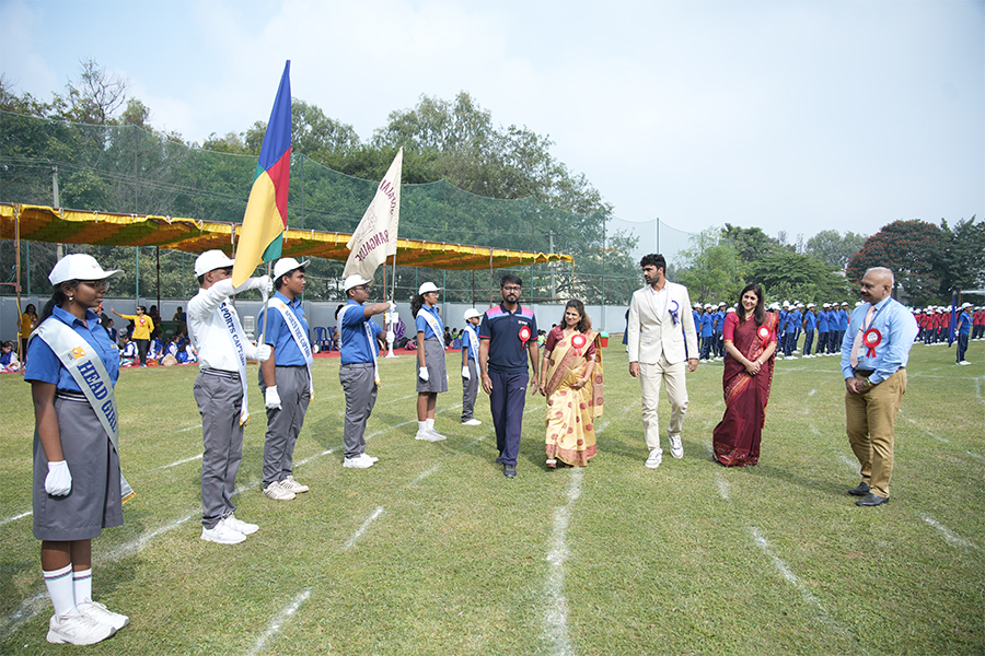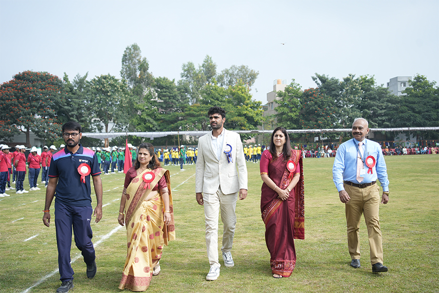 Innovation was a key pillar of this year’s event. A student-built drone, created indigenously in collaboration with Gopalan Engineering College, soared high above the ground to inaugurate the Sports Meet. With petals being showered from the drone across the field, the drone carried a scroll which was released by the Chief Guest, Mr. Adil Kalyanpur, Indian tennis player, to declare the sports meet open. This remarkable fusion of creativity and technology reflected the school’s emphasis on hands-on learning and forward-thinking education.