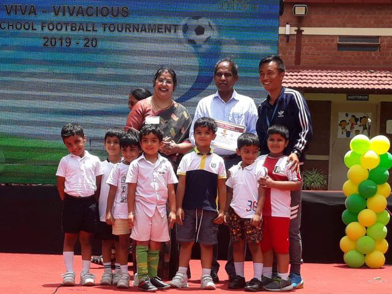 GNS football coach Mr.Mahesh has been awarded as The BEST COACH of the tournament for the pre-primary inter school football tournament held at Whitefield global school.