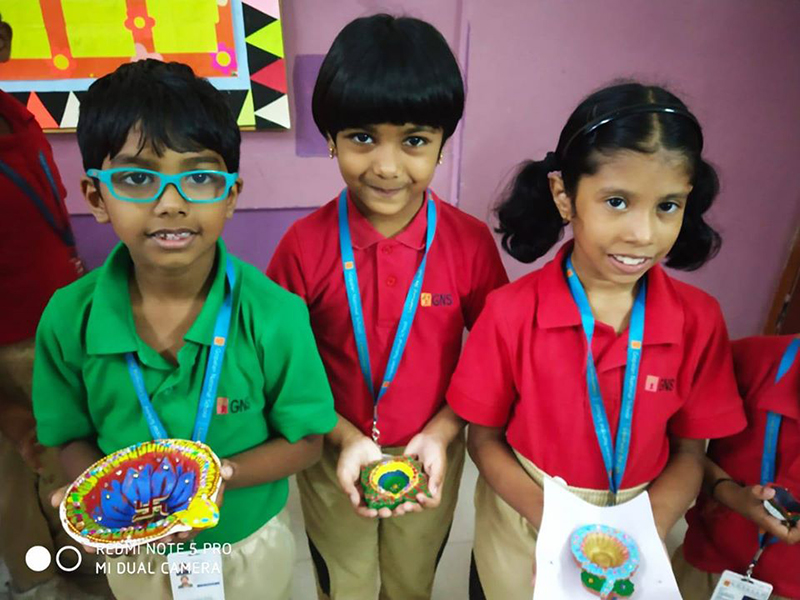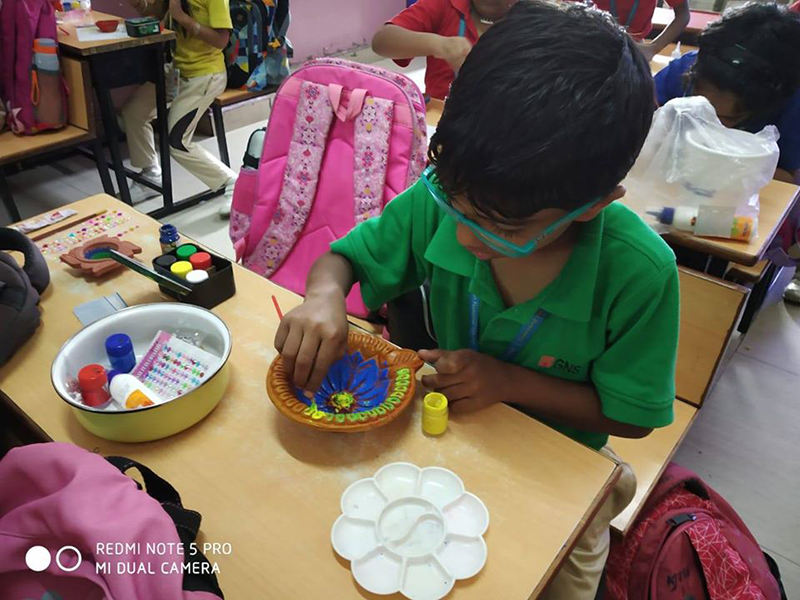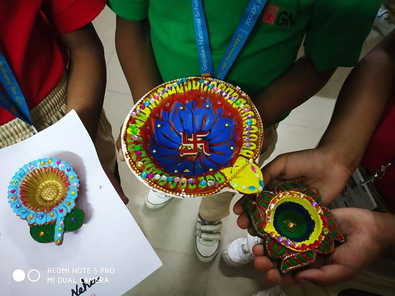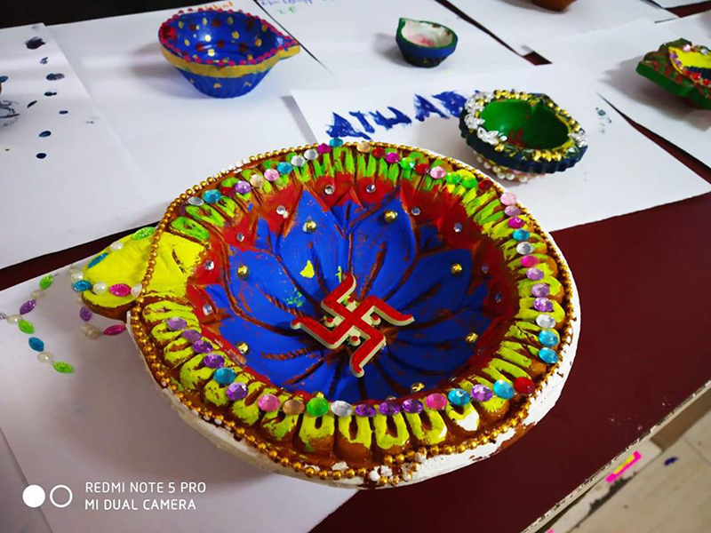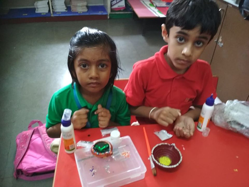 With the excitement of the festive season in the air, the students of class 1 and 2 participated in the Diya Decoration Competition. The kids displayed their creativity by decorating the earthen lamps beautifully. Every piece was decorated in a unique way. The kids also learnt about the significance of earthen lamps.